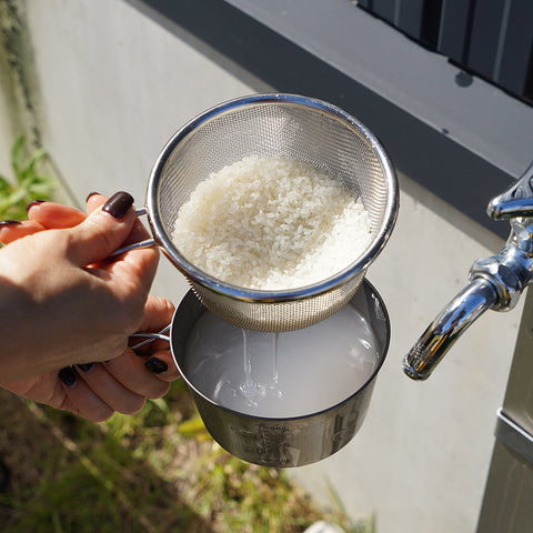 材料やめん類の水切りやスープこしなどに。パッキングに最適なスタッキング構造。使い勝手のよいサイズでシェラカップ深型600mlにピッタリ収まります。