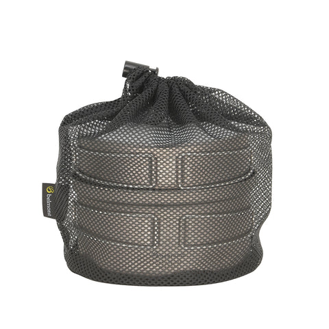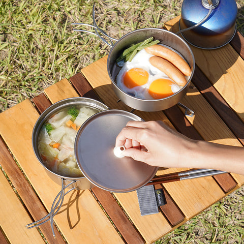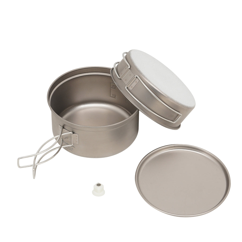 チタントレールクッカーのポットとフライパンへアルミの溶射0.4mmを施すことにより熱効率がアップし、調理のしやすい軽量クッカーになりました。