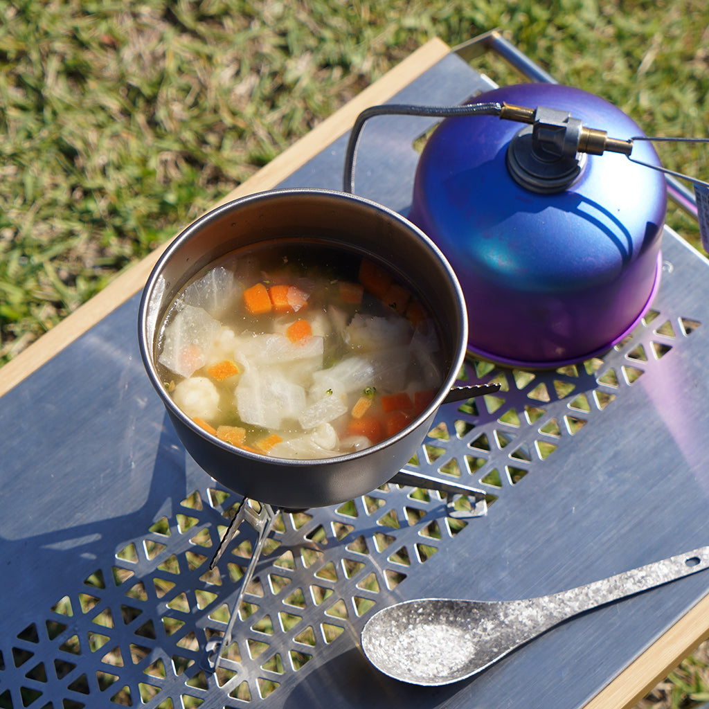 ハンドルレスなので同じサイズでも重ねやすく、入れ子でスタッキングは◎。登山やULキャンパーで軽量を追求する方におすすめです。